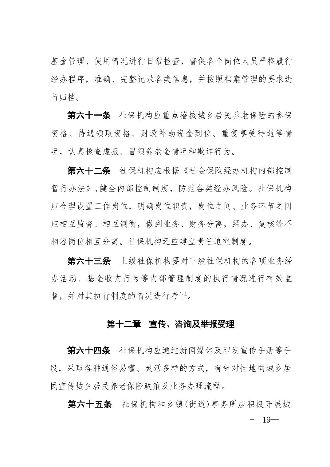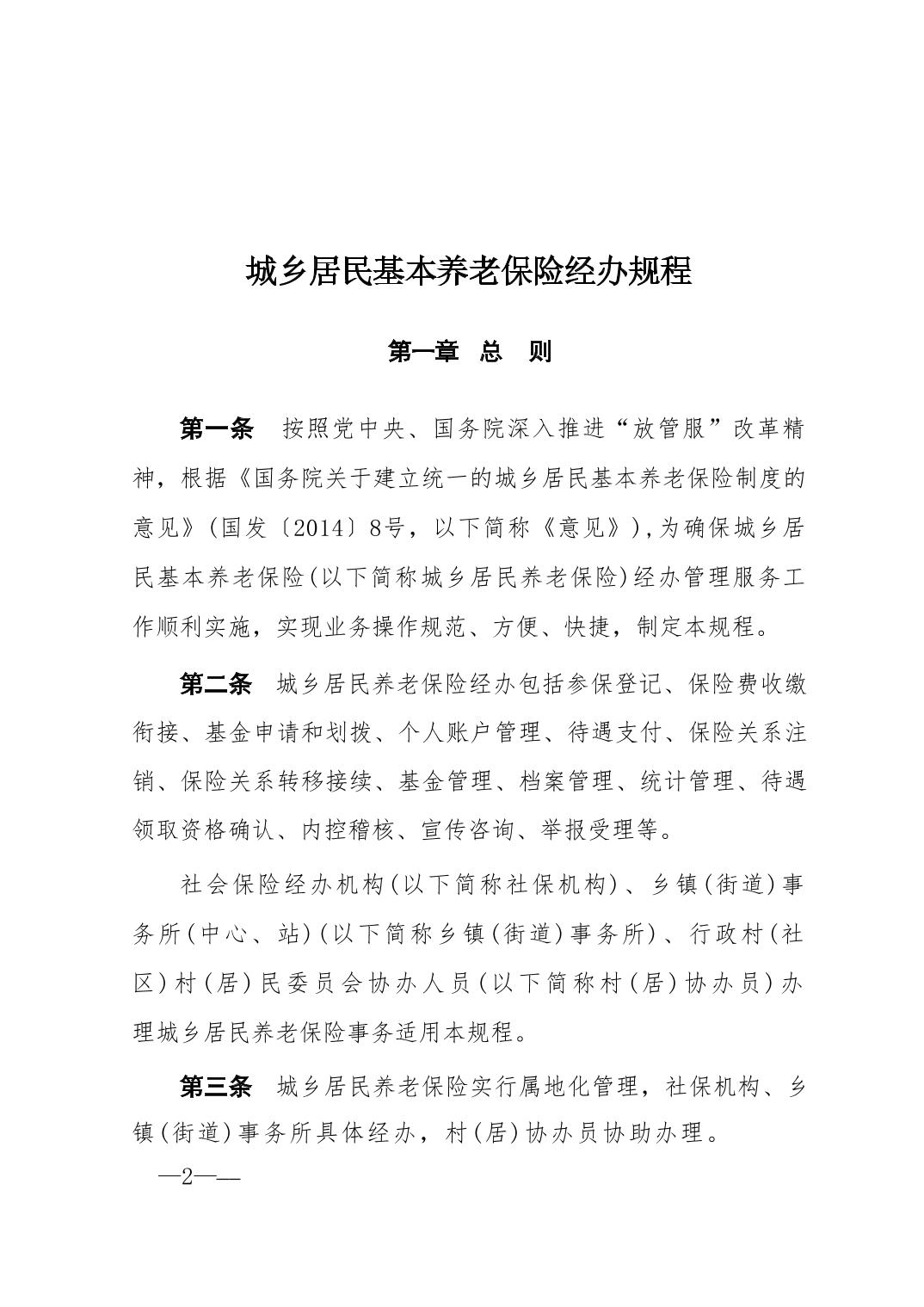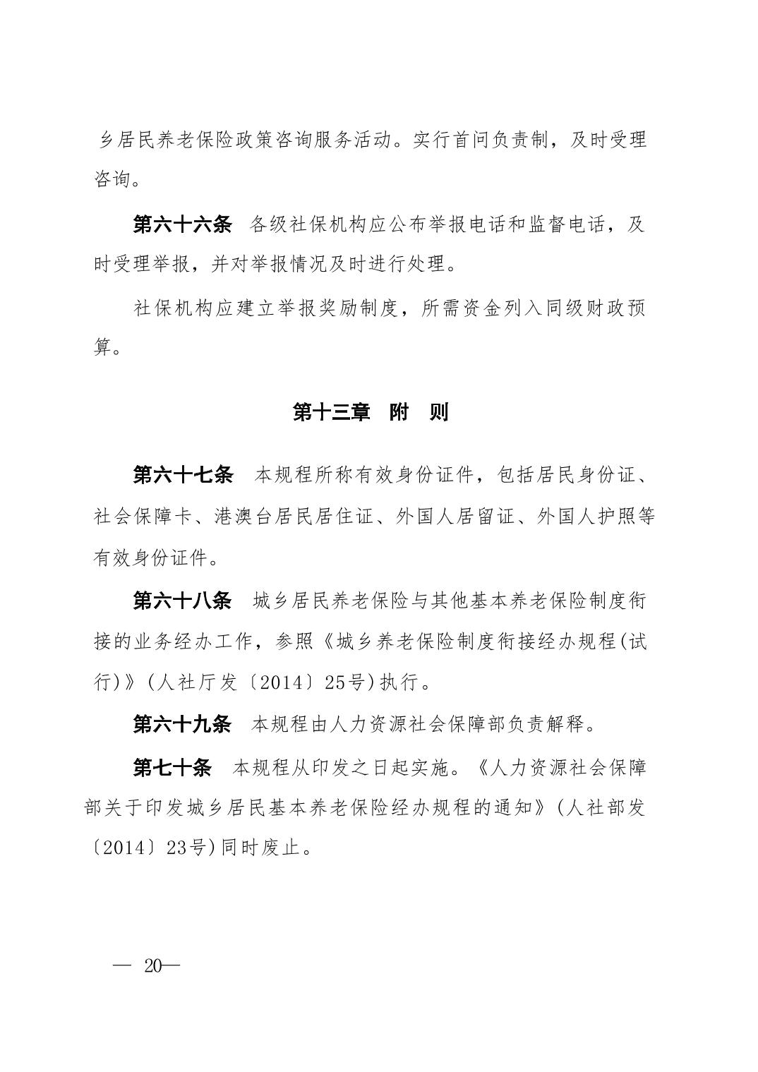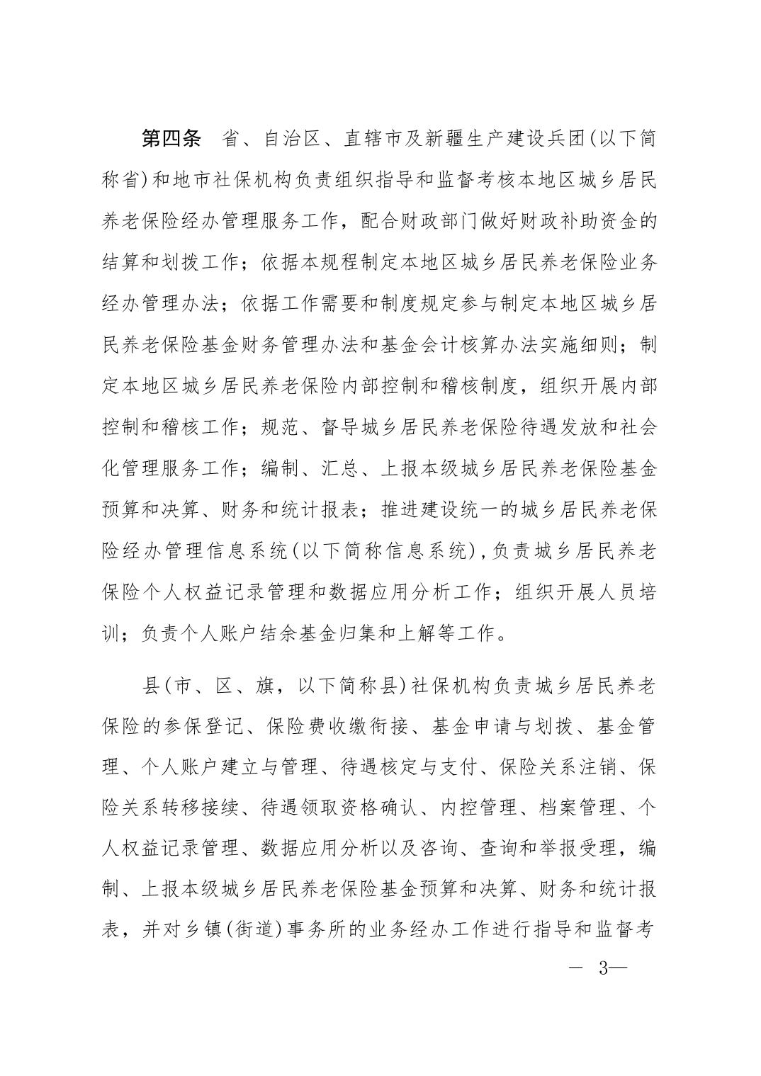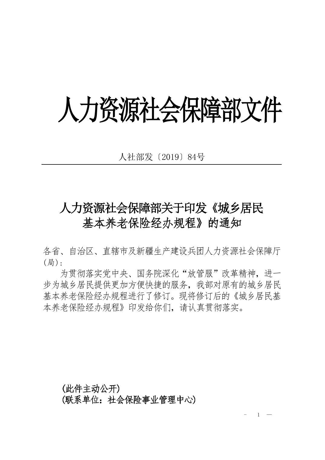人力资源社会保障部关于印发《城乡居民基本养老保险经办规程》的通知