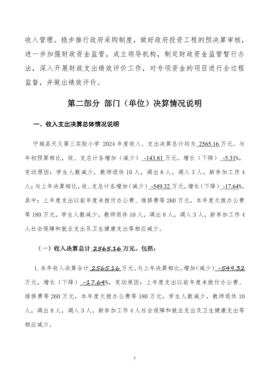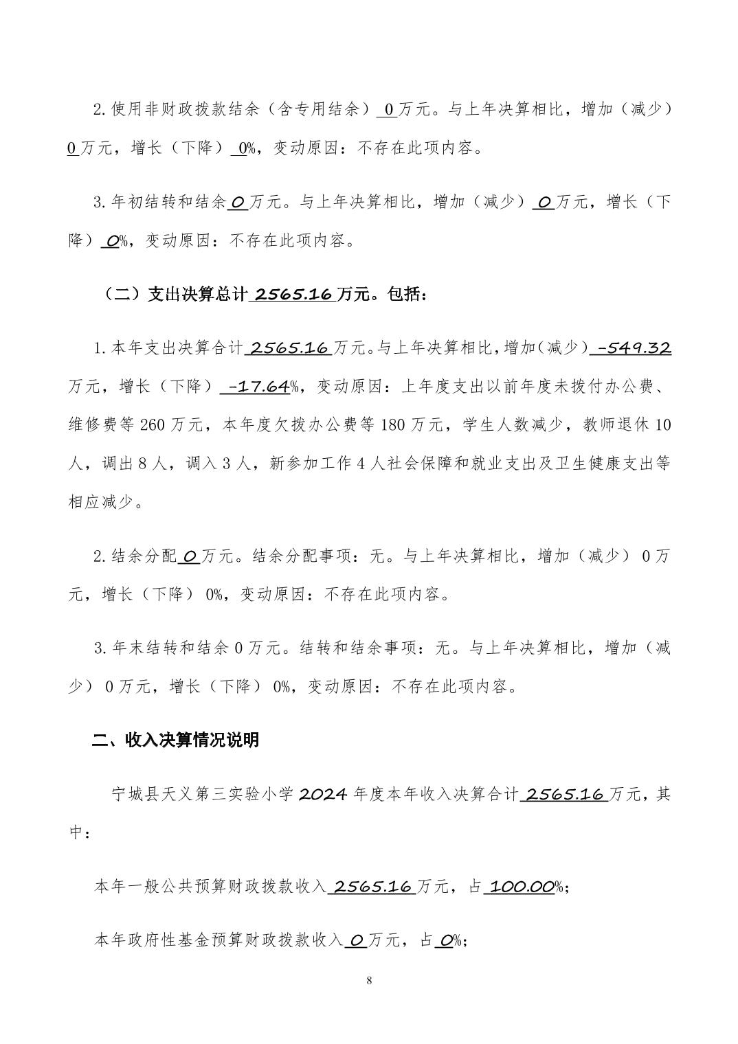 2024年度宁城县天义第三实验小学公开(决算报告)
