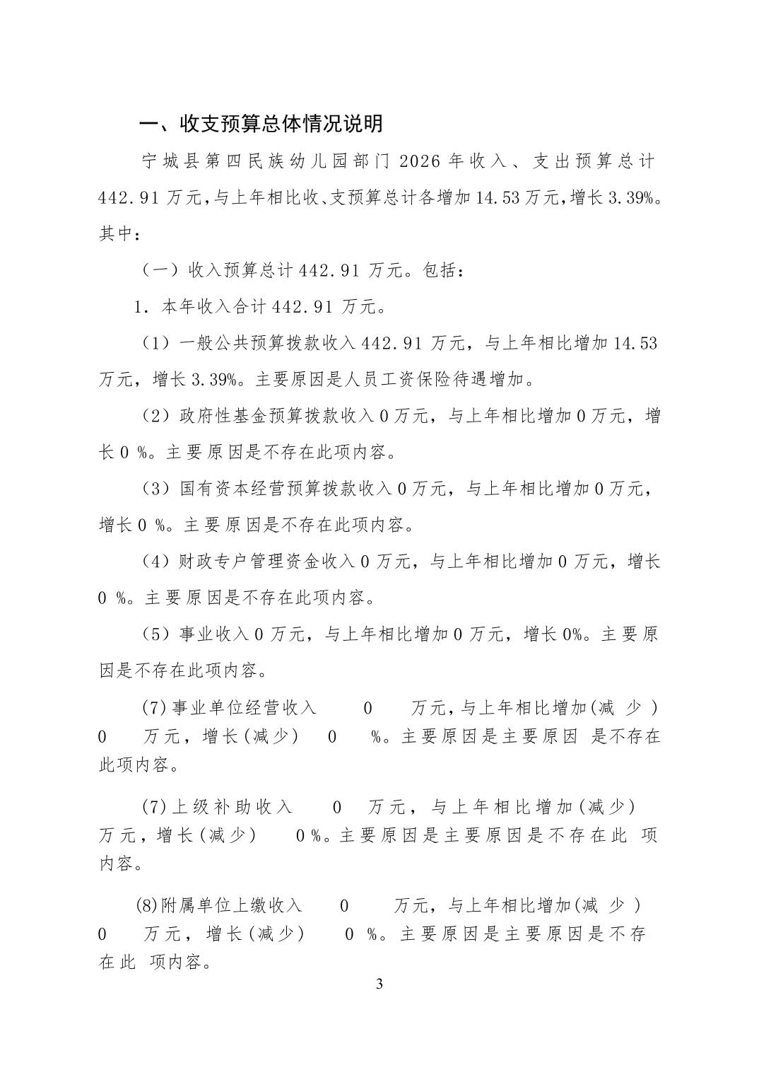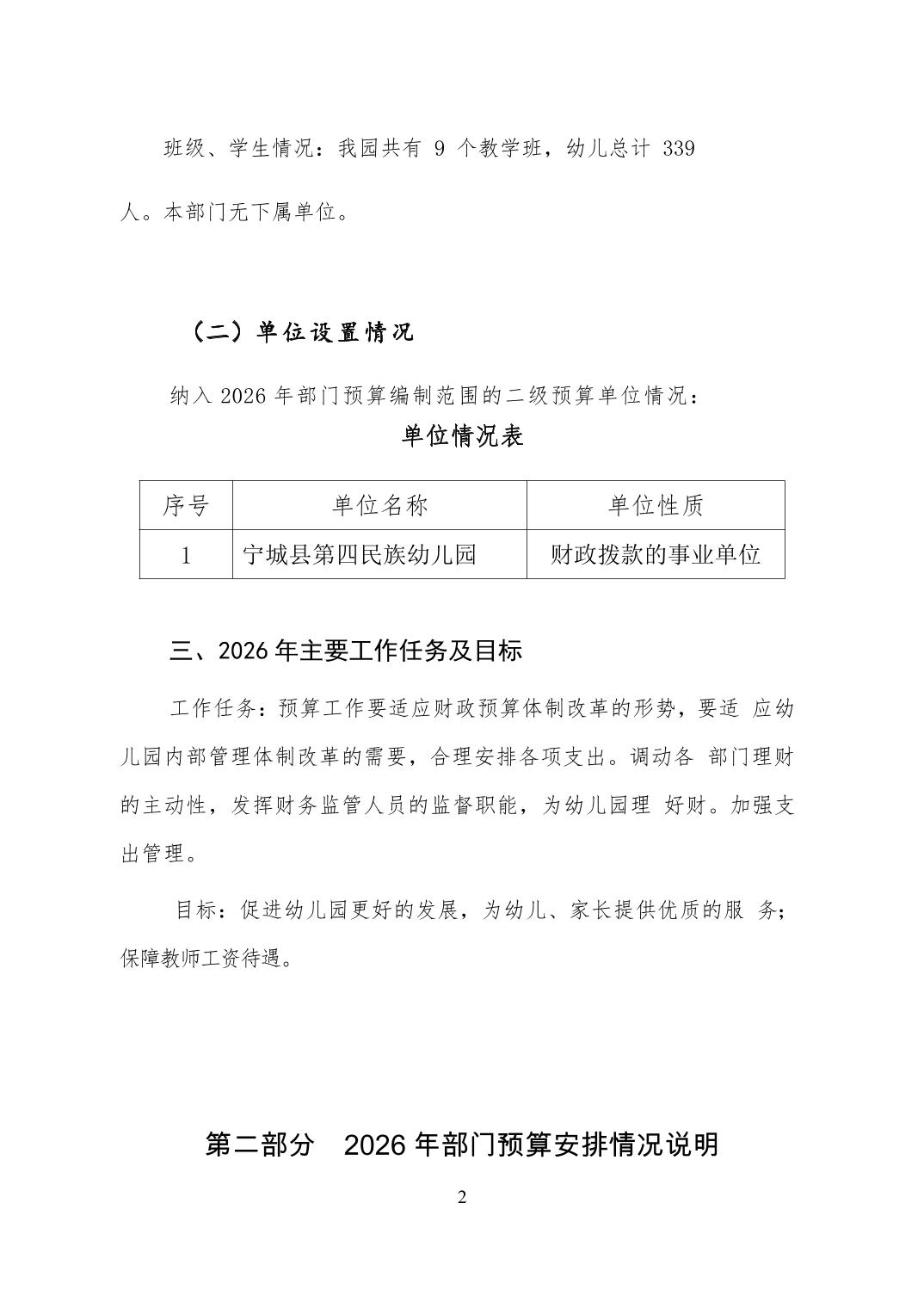 2026年宁城县第四民族幼儿园预算公开