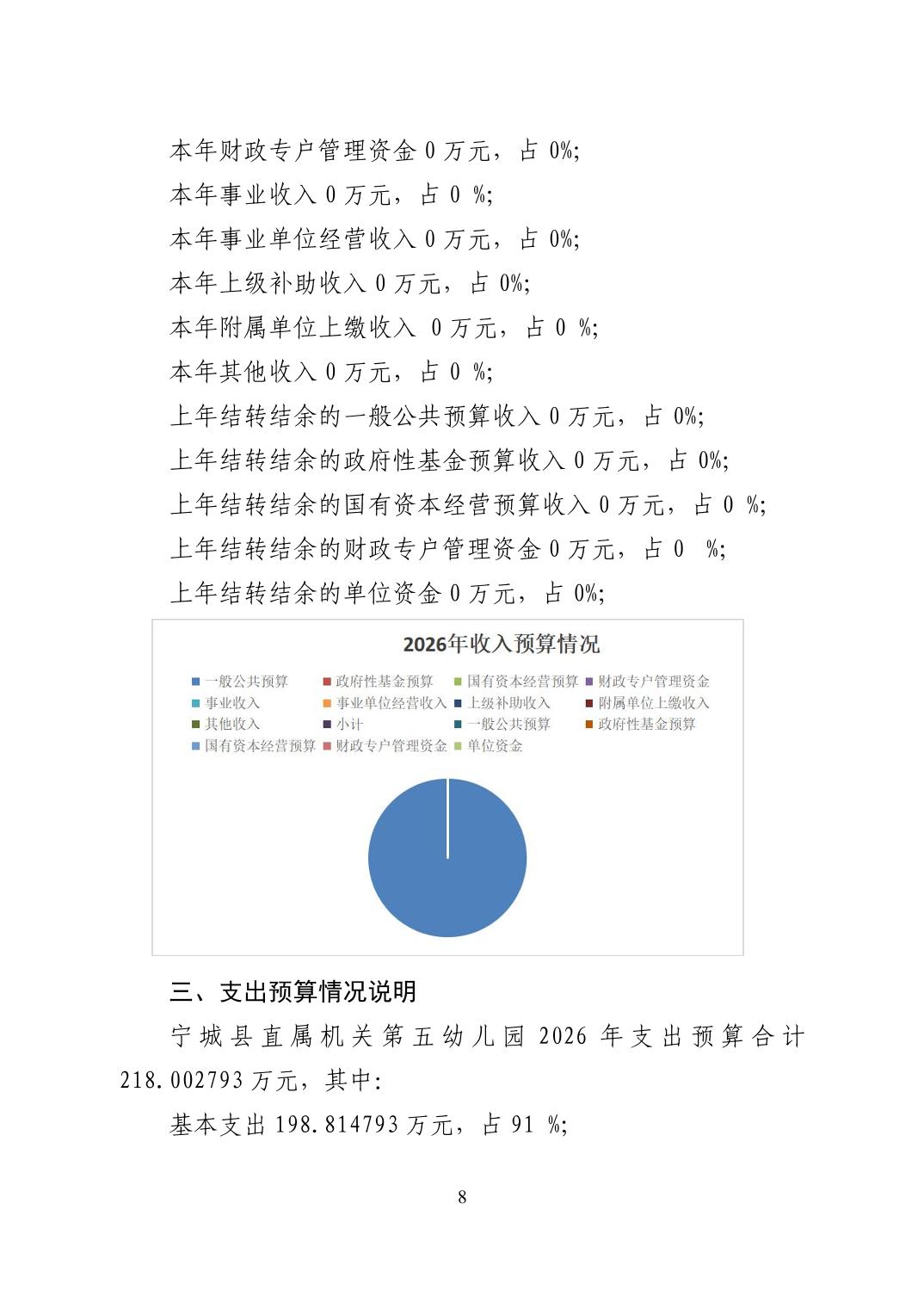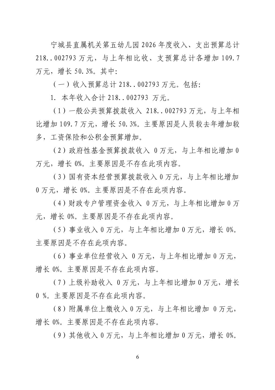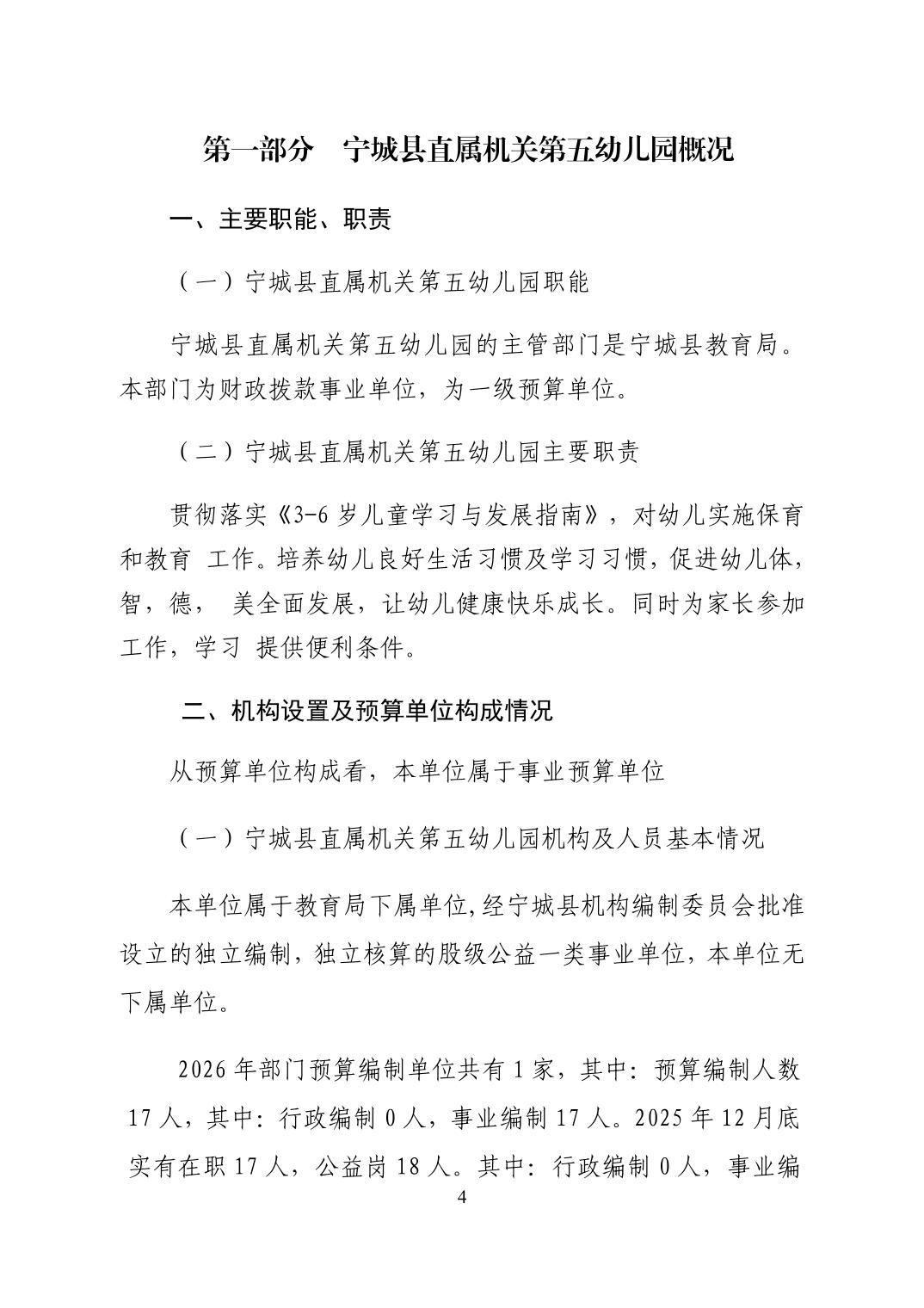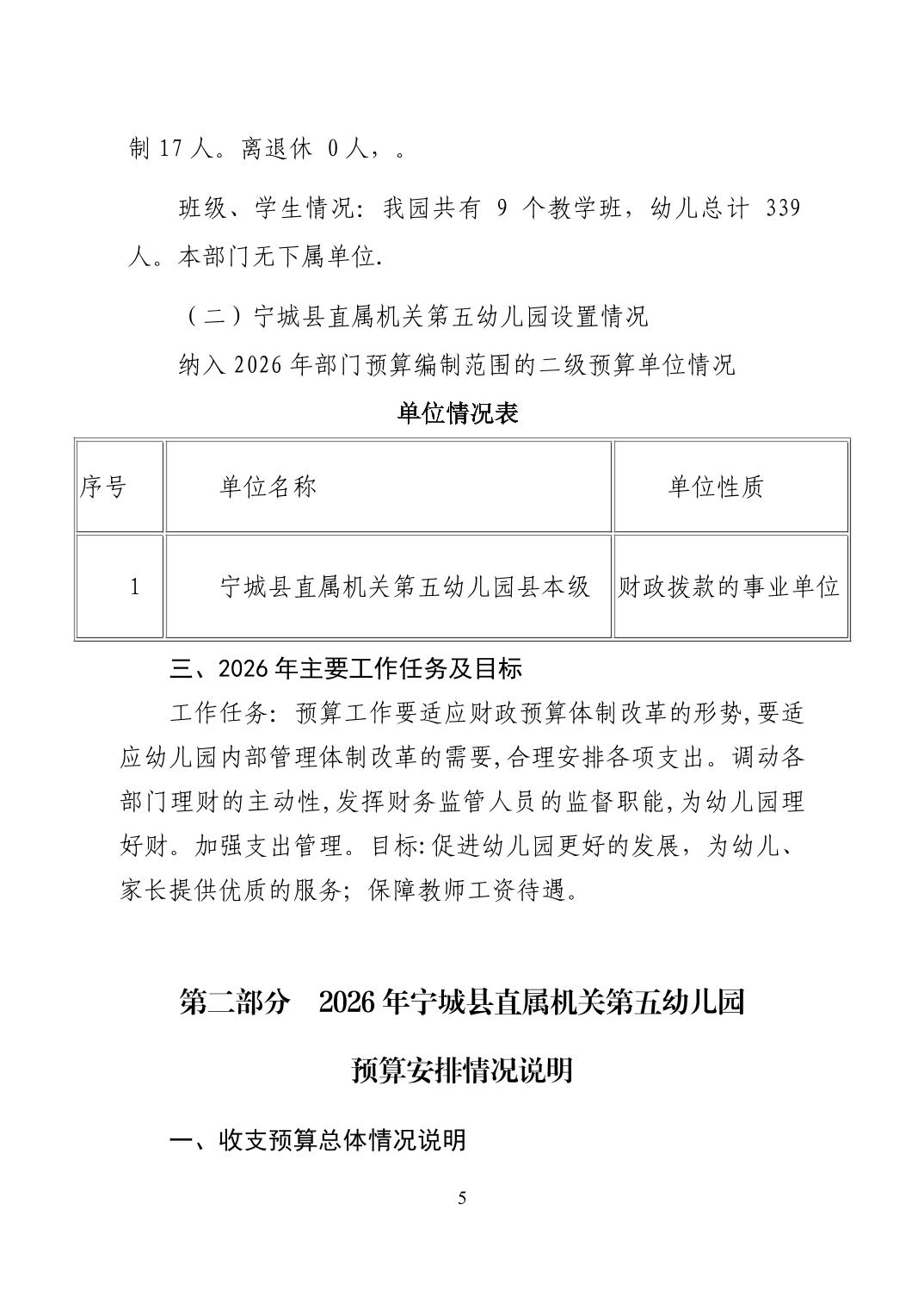 2026年度宁城县直属机关第五幼儿园预算公开报告