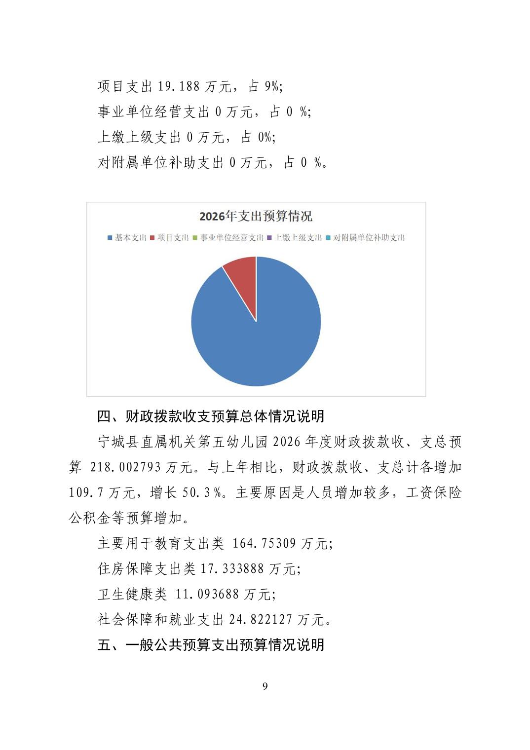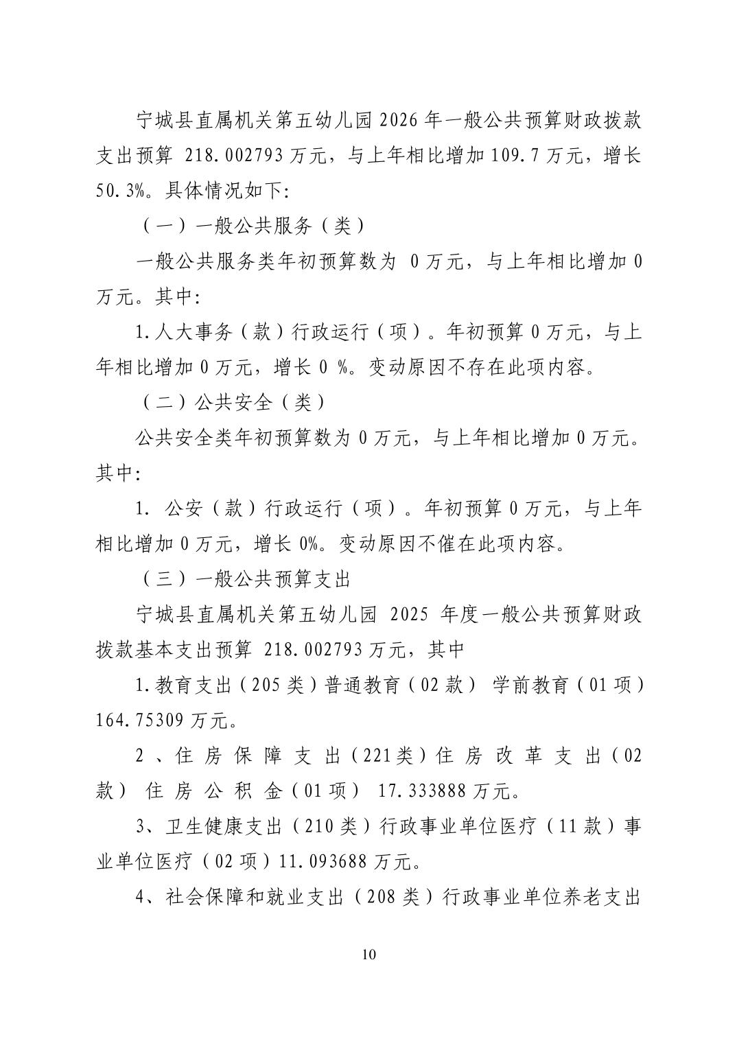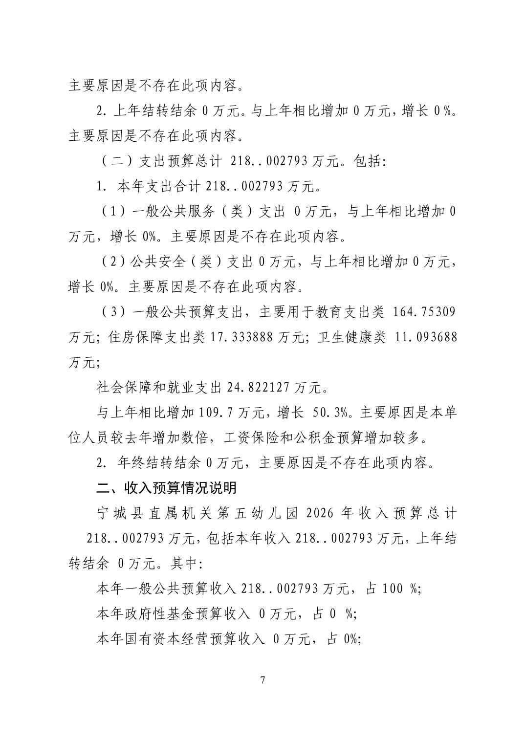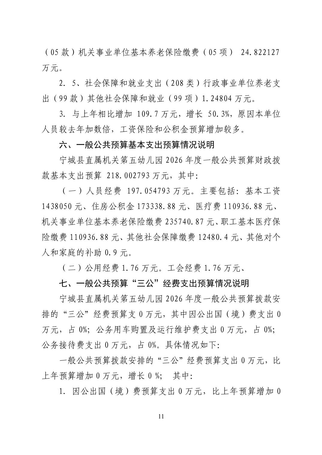 2026年度宁城县直属机关第五幼儿园预算公开报告