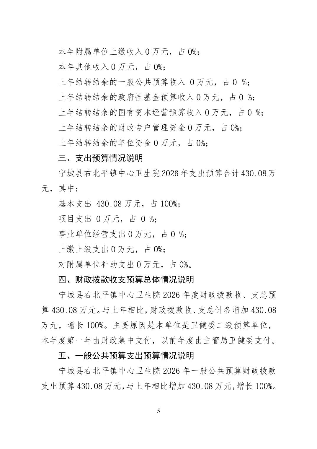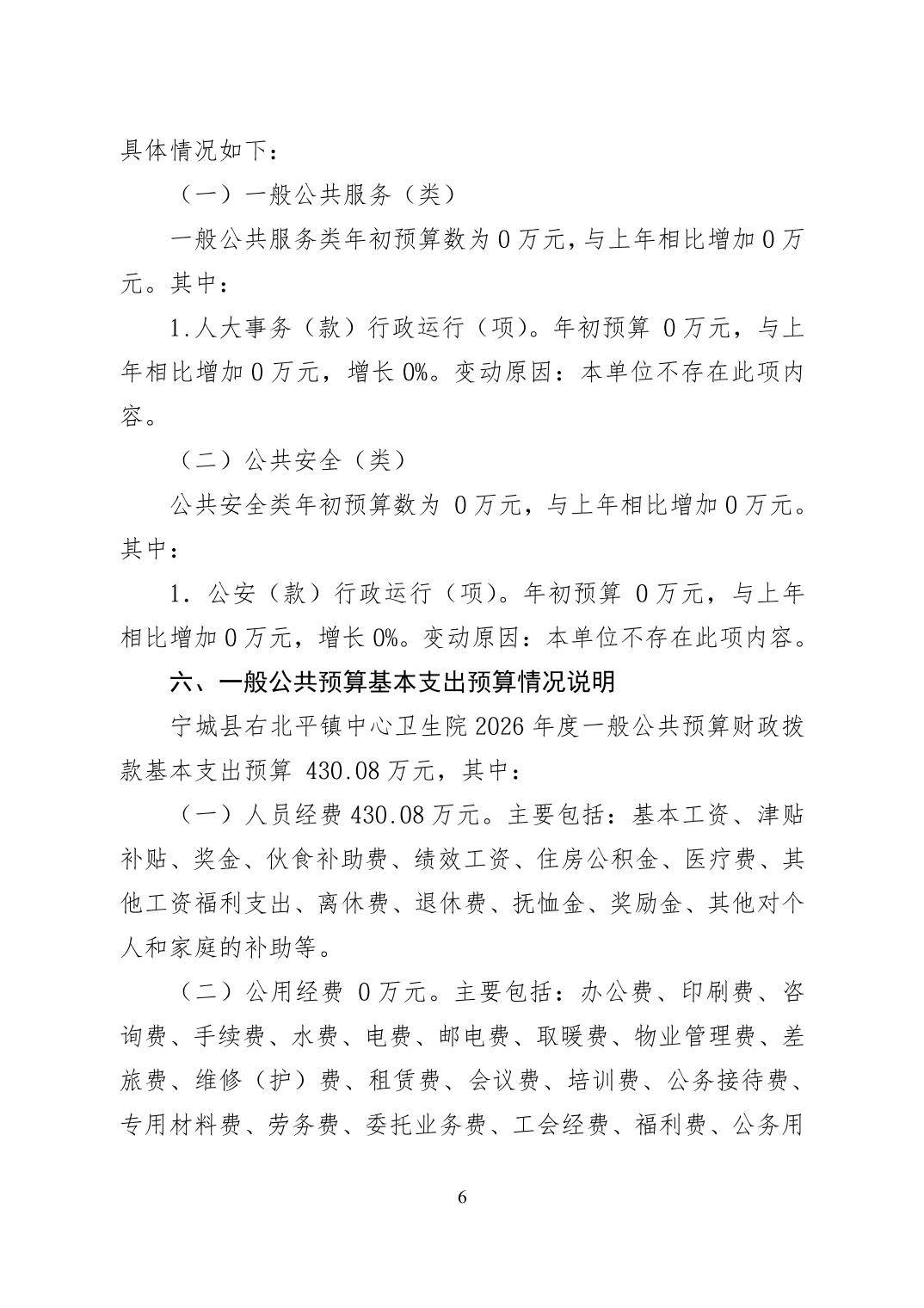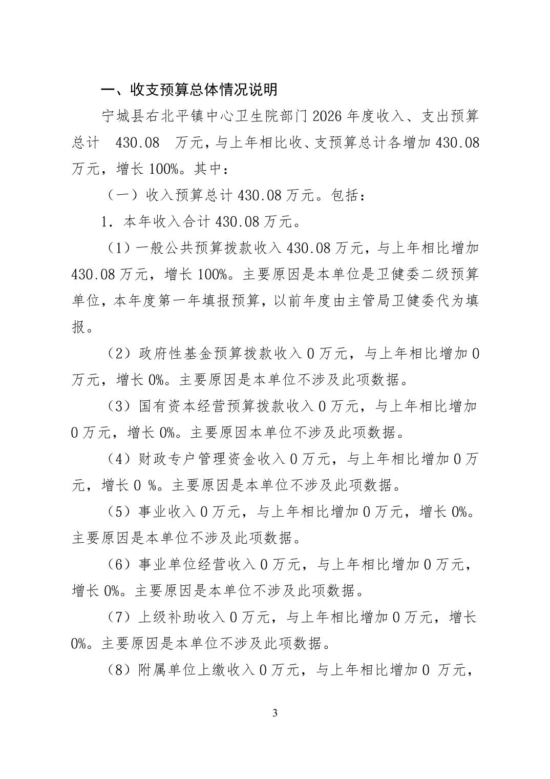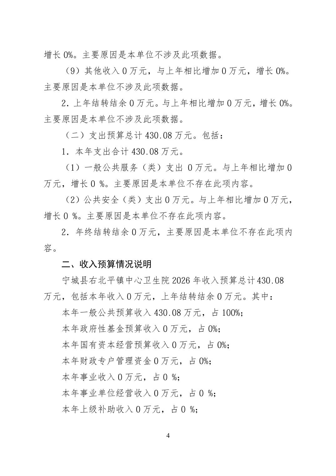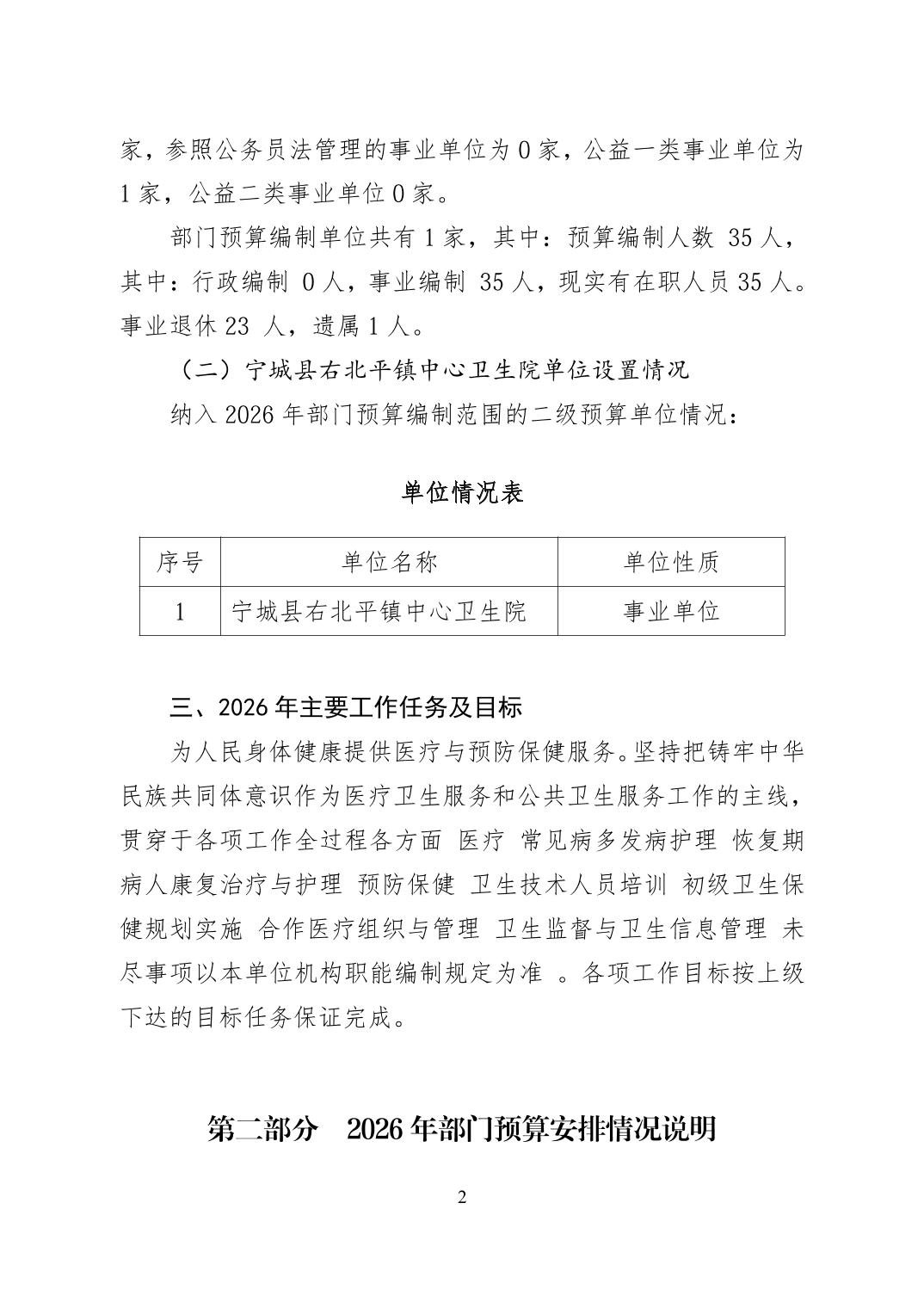 宁城县右北平镇中心卫生院2026年部门预算公开报告