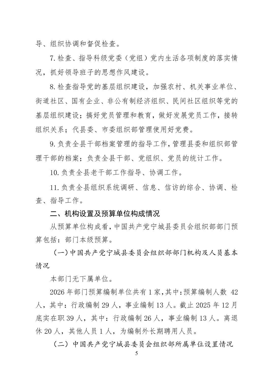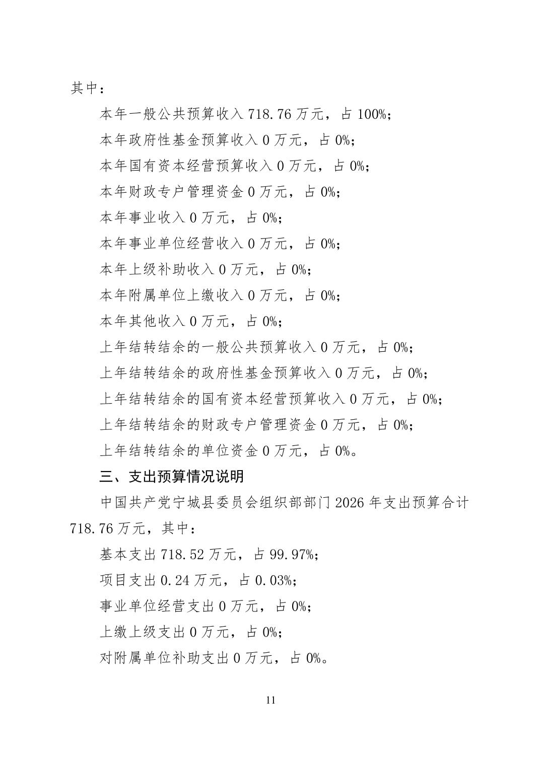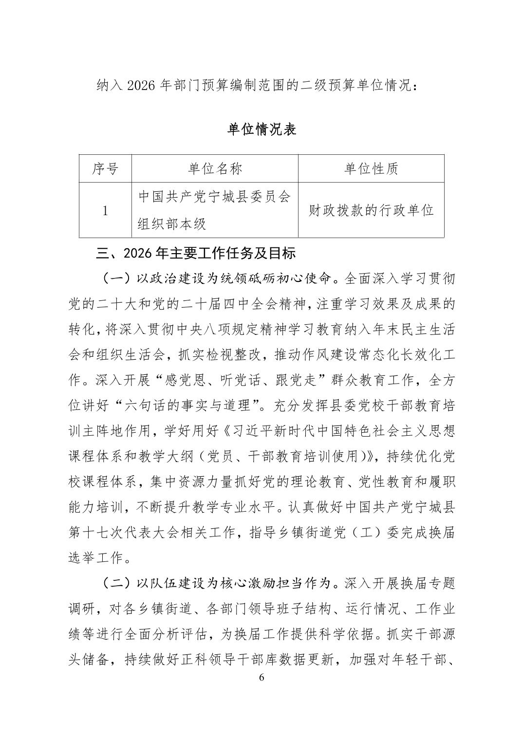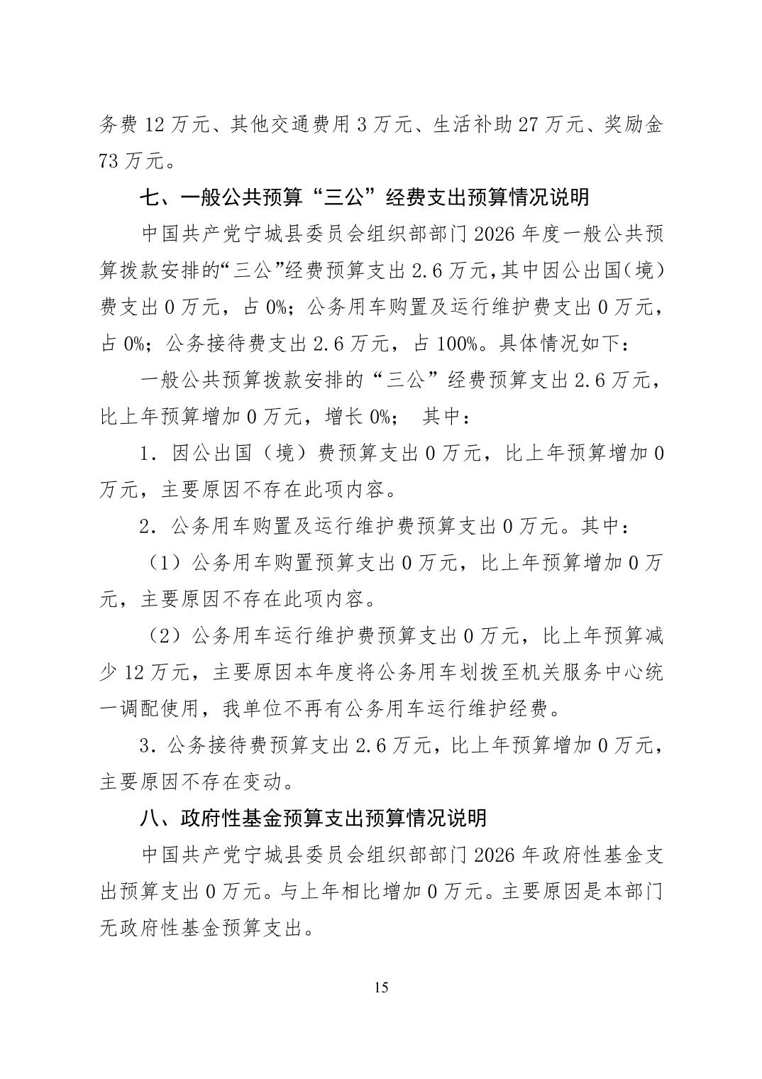 中国共产党宁城县委员会组织部2026年预算公开报告