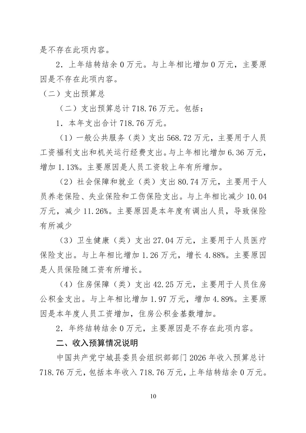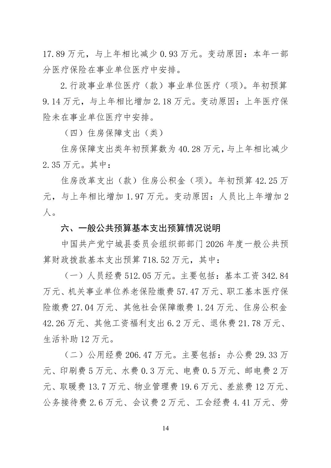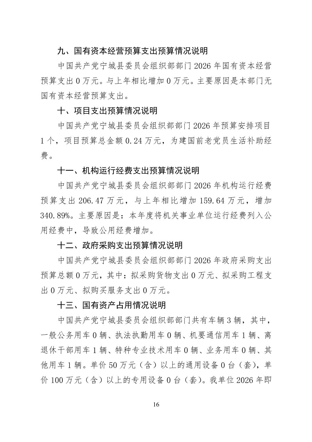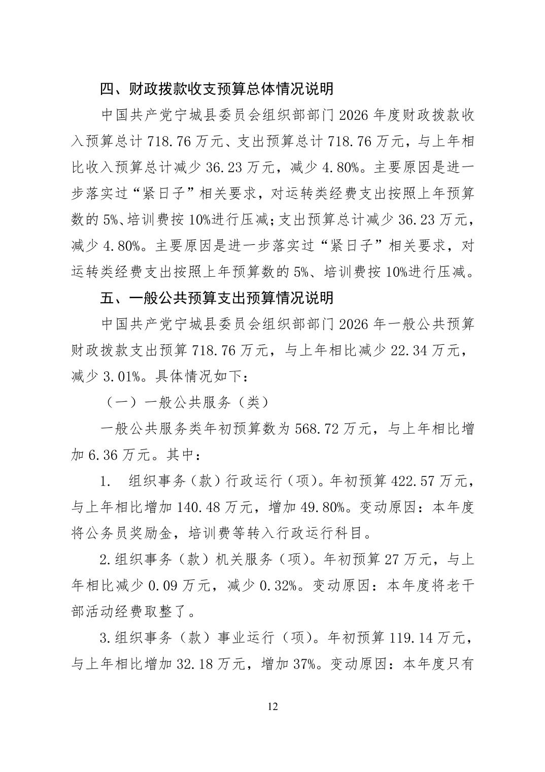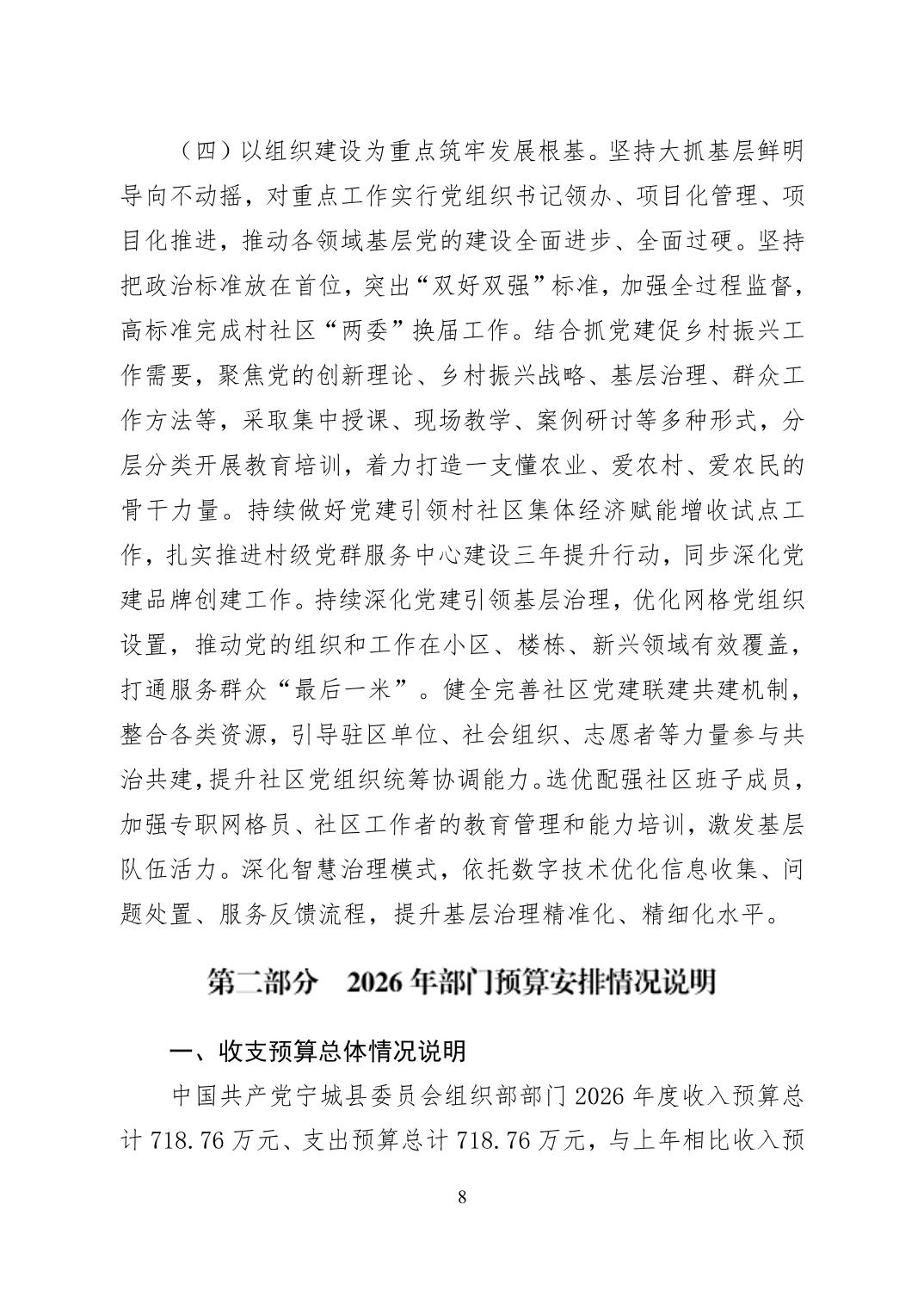 中国共产党宁城县委员会组织部2026年预算公开报告