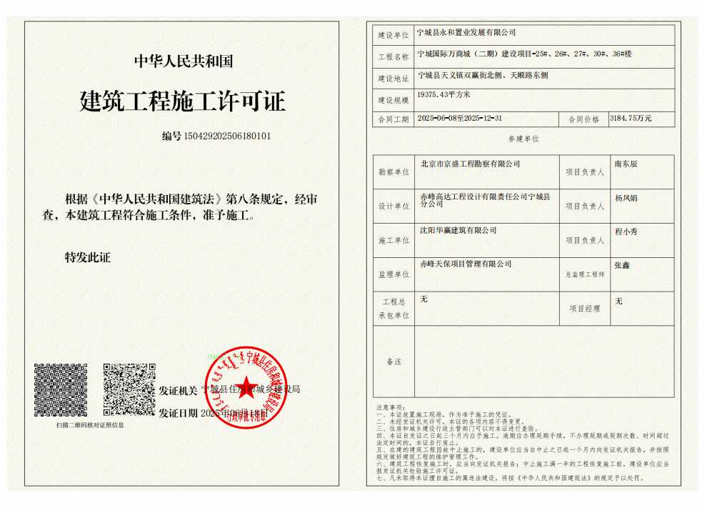 项目名称:宁城国际万商城(二期)建设项目-25#、26#、27#、30#、36#楼