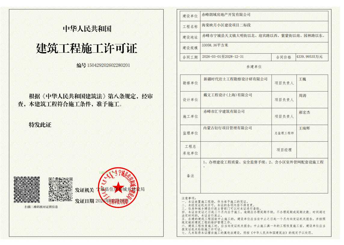 施工单位及项目负责人:赤峰汇宇建筑有限公司