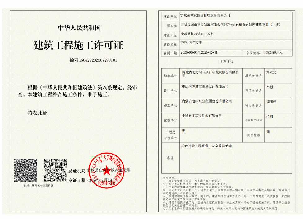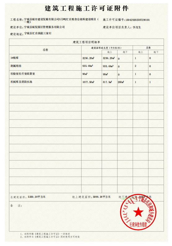 项目名称:宁城县城市建设发展有限公司5万吨忙农粮食仓储库建设项目(一期)
