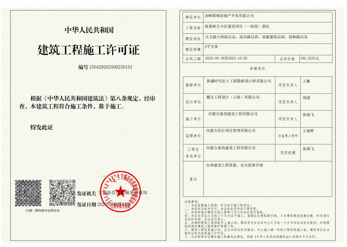 施工单位及项目负责人:内蒙古鼎尚建设工程有限公司